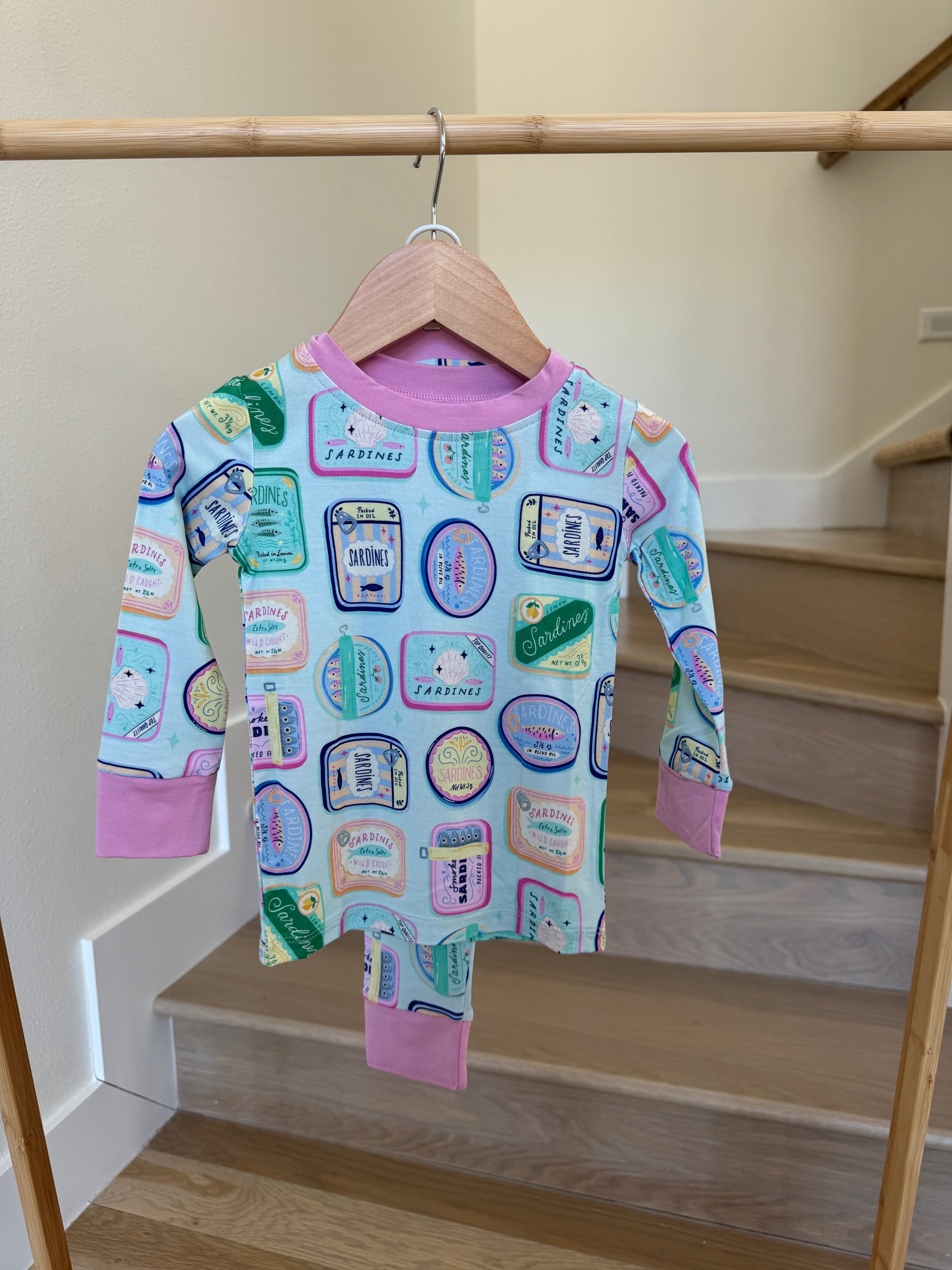 Long sleeve, round neck, easy on/off ultra soft bamboo/spandex pajama set.